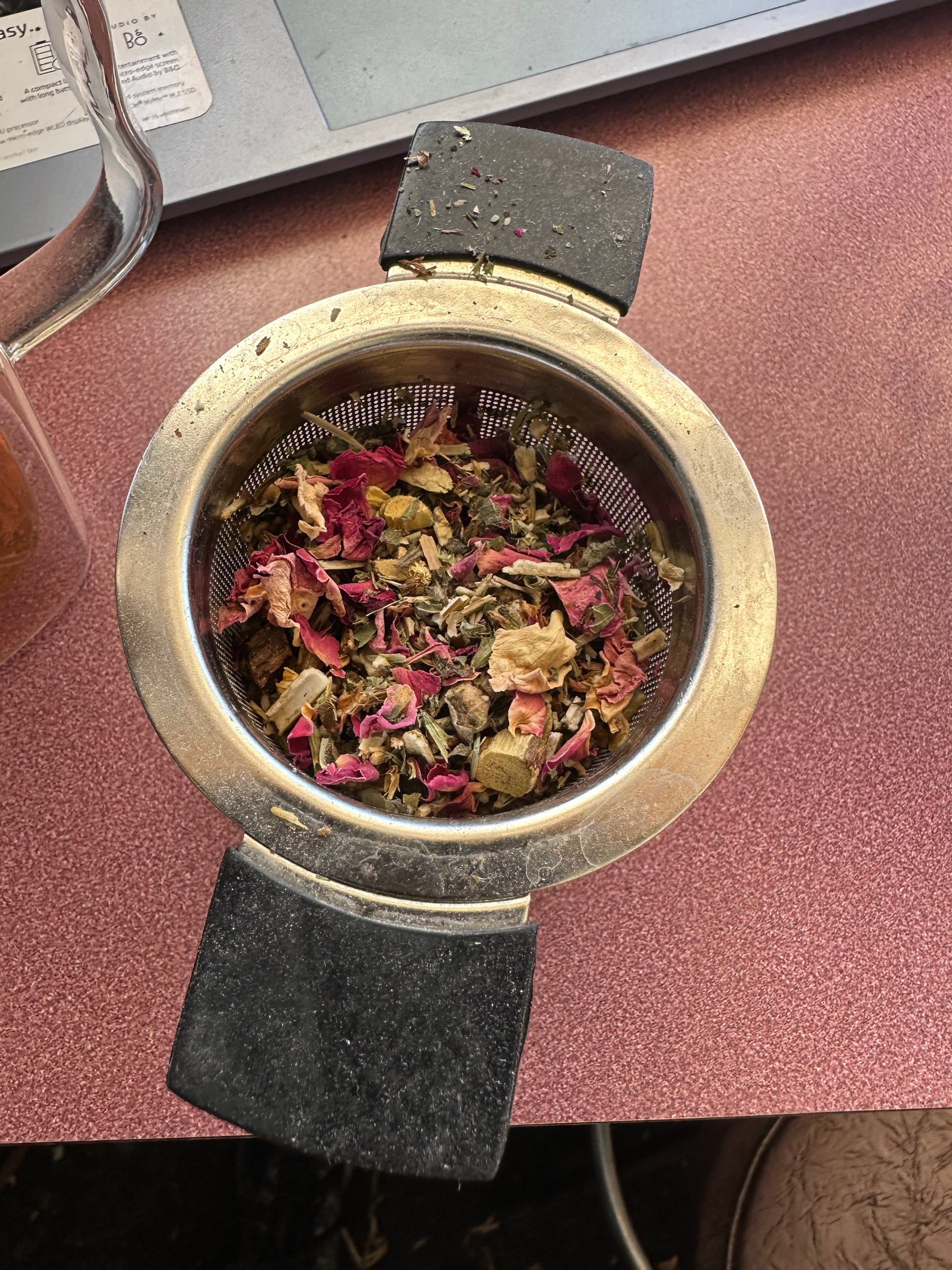 Ingredients: Red Rose, pink rose, lemon balm. motherwort and licorice